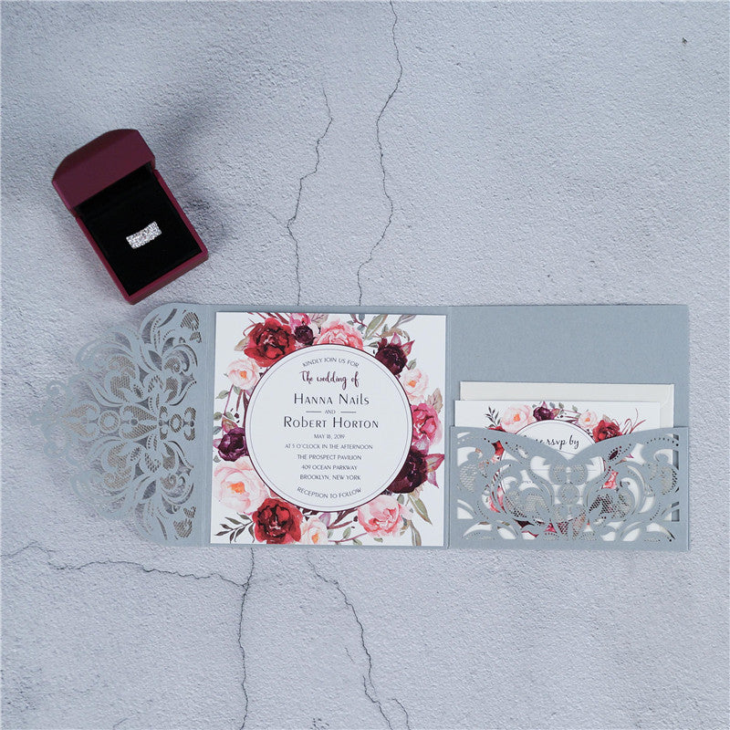 Are you a DIY bride? Are you planning an event but love DIY? This elegant laser cut folders/pocket folds are perfect for that one of a kind event.
